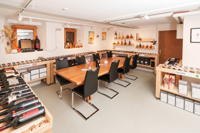 Unser ganzer Stolz ist der gemütliche Weinladen im Keller unseres Hauses. Dort präsentieren wir alle unsere Produkte. Ein grosser Tisch lädt zu Degustationen, Sitzungen usw. mit max. 12 Personen ein. Fragen Sie uns an, wir geben gerne Auskunft.